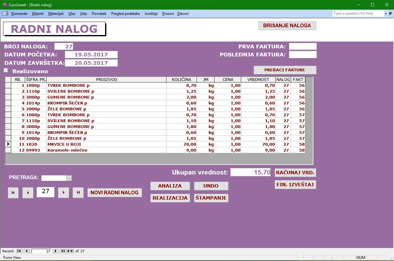 Program za robno knjigovodstvo u proizvodnjoj organizaciji